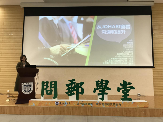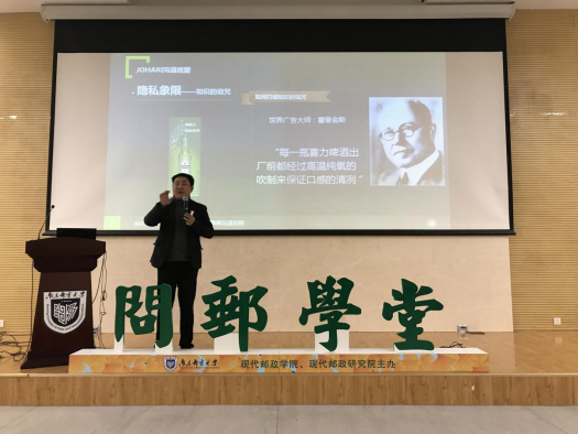 南京邮电大学人事处副处长徐欣副教授在同学们的热烈欢迎中开启了“問郵學堂”的第二讲——“从JOHARI窗看沟通和提升”。徐教授从三个生动有趣的小故事开讲,为同学们展开了一场别开生面的课前秀,并由此巧妙引出“沟通”这一主题。他独到地引入管理实务学中的“JOHARI窗”,将沟通中的信息问题分为公开象限、隐私象限、盲点象限、潜能象限这四类,引用富有哲理的寓言、激人奋进的影片、切身经历的鲜活事例,其间不时与同学们互动,营造了妙趣横生的课堂氛围,深刻地揭示了沟通的重要性,深入浅地阐释了各种情境下的正确沟通方式,为同学们不断提升自身沟通能力,成为综合型优秀人才指明了方向。