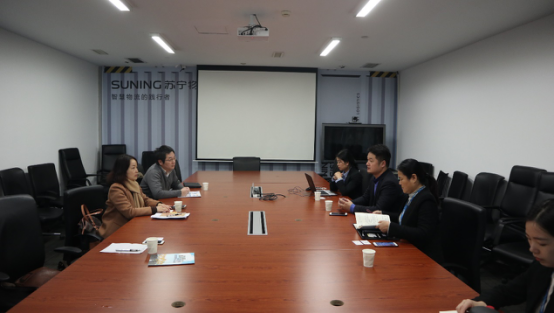 12月6日下午,学院尹志丽书记、曹亚东副院长一行赴苏宁物流开展交流活动。苏宁云商集团物流研究院孟雷平副院长、物流集团人力资源中心邹冬萍总监热情接待了学院一行。