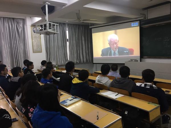 2018年10月15日,现代邮政学院组织了全体研究生在三牌楼校区教学楼西401以观看直播视频的方式学习2018年全国科学道德和学风建设宣讲教育报告会的会议精神,院长孙知信教授、辅导员经素老师陪同学生一起观看。