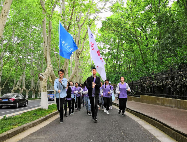 “薪火传•踏歌行”校庆健身跑包括接力跑、精英跑、校园跑、线上跑等四种形式。现代邮政学院2018级学子在辅导员盛秋旭老师的带领下来到了位于中山风景区的接力点,进行了1.5公里的接力跑;分团委书记兼2017级辅导员柏杨老师组织2017级学生参加了校园跑。师生们在校园内外,用投入的奔跑、真挚的情感、嘹亮的歌声,共同庆祝母校77周岁生日,在校庆跑活动中,感受南邮发展历程、传承南邮精神,锐意进取,共同筑梦。
