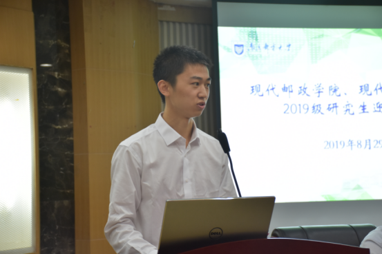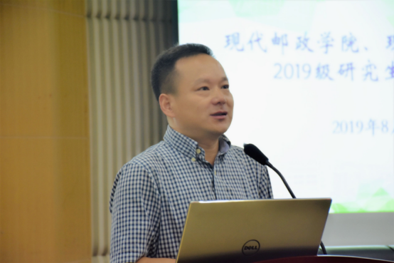 8月29日上午九点半,现代邮政学院2019级硕士研究生迎新大会在三牌楼校区科学会堂一楼报告厅举行。学院院长孙知信、党总支书记尹志丽、副院长曹亚东、院长助理赵学健和导师代表及全体2019级研究生参加了大会。大会由现代邮政学院副院长曹亚东主持。