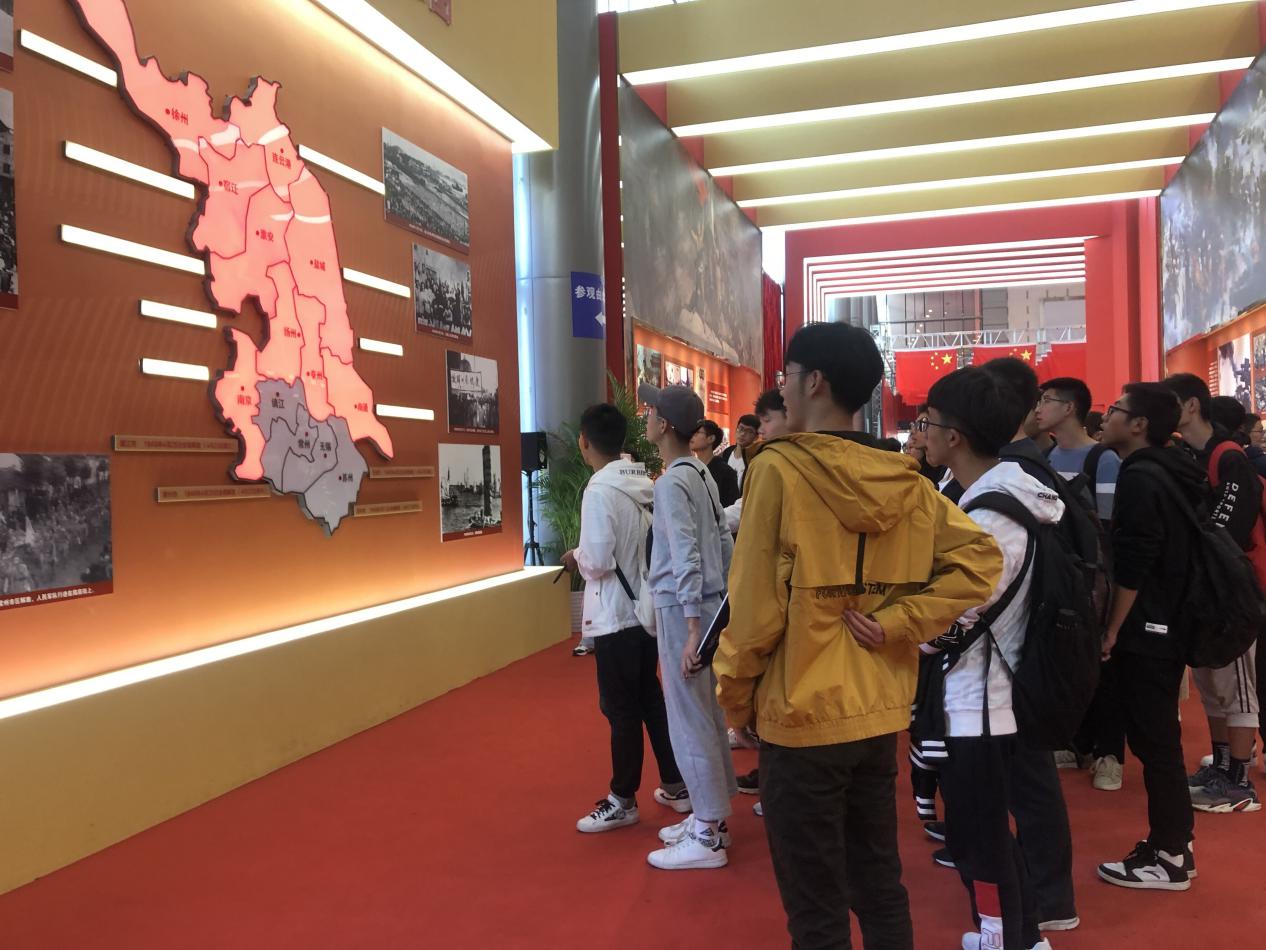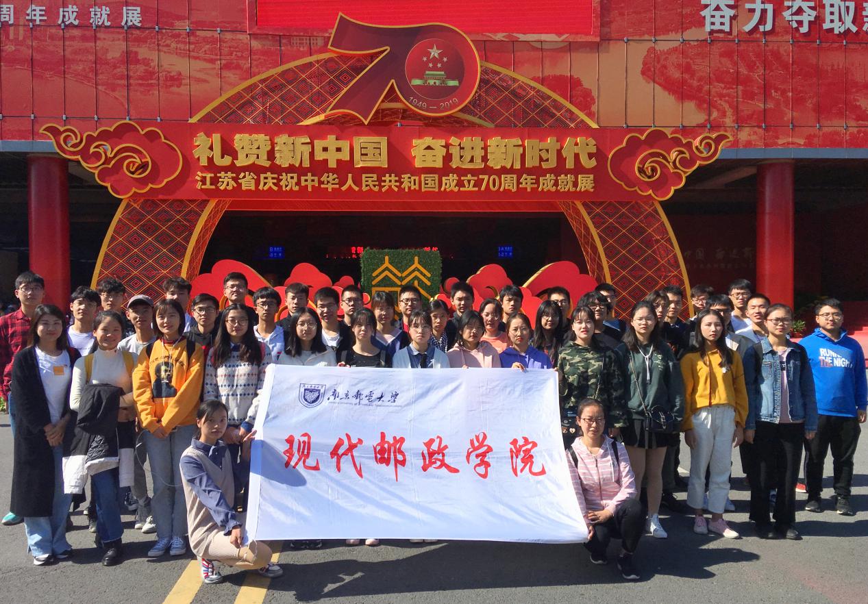 10月15日下午,现代邮政学院部分师生走进南京国际博览中心,集中参观“礼赞新中国 奋进新时代——江苏省庆祝中华人民共和国成立70周年成就展”。活动由我院2018级辅导员盛秋旭老师带队,2018级40余名学生积极参与。
