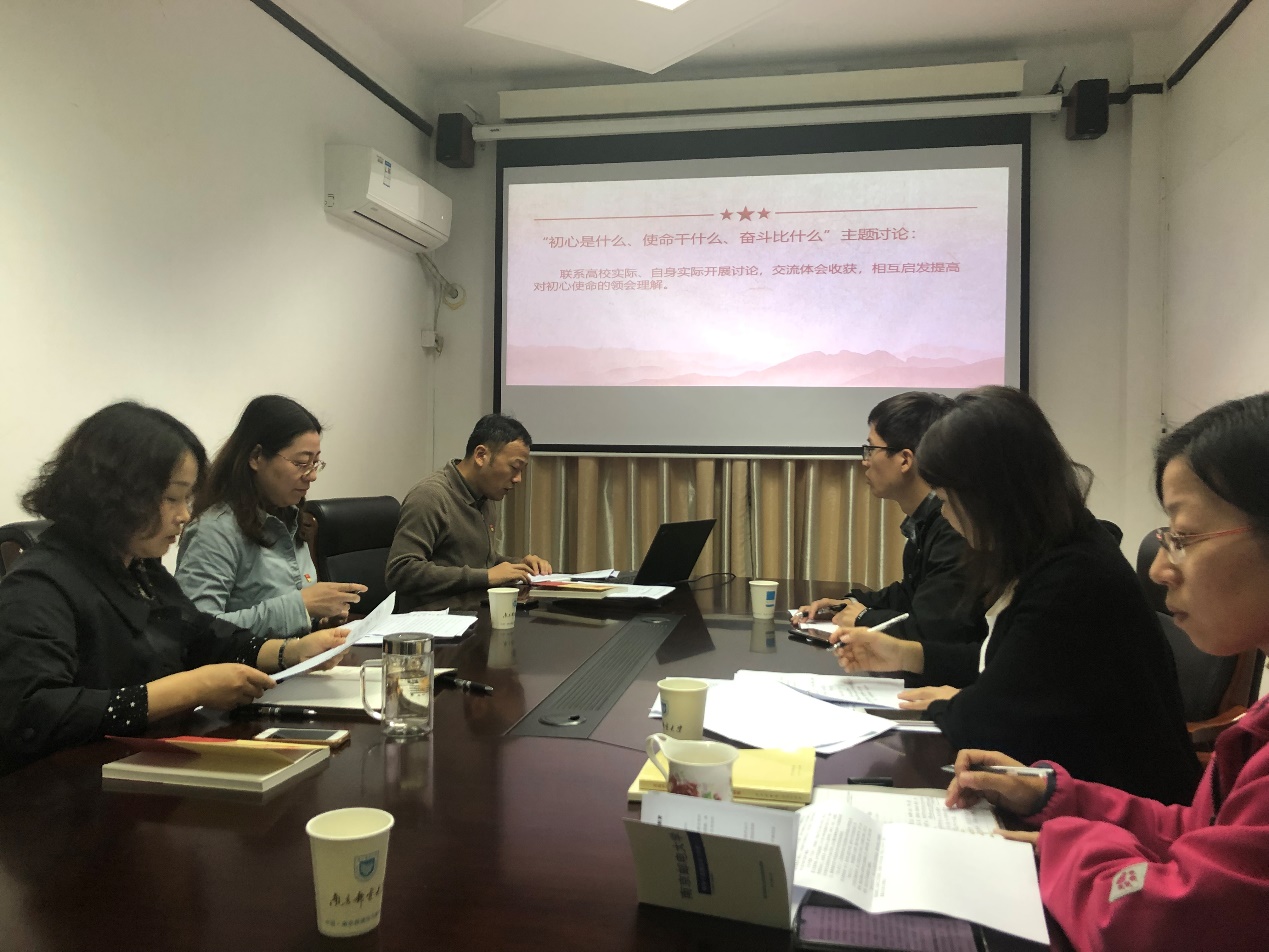 听完党课,与会人员都感到受益良深。支部党员纷纷结合“初心是什么、使命干什么、奋斗比什么”进行了学习体会分享,表达了在各自的岗位上不忘教育的初心,承担立德树人的使命,并将初心和使命落实到比思想觉悟、比积极主动、比团结协作、比开拓创新、比无私奉献中去。