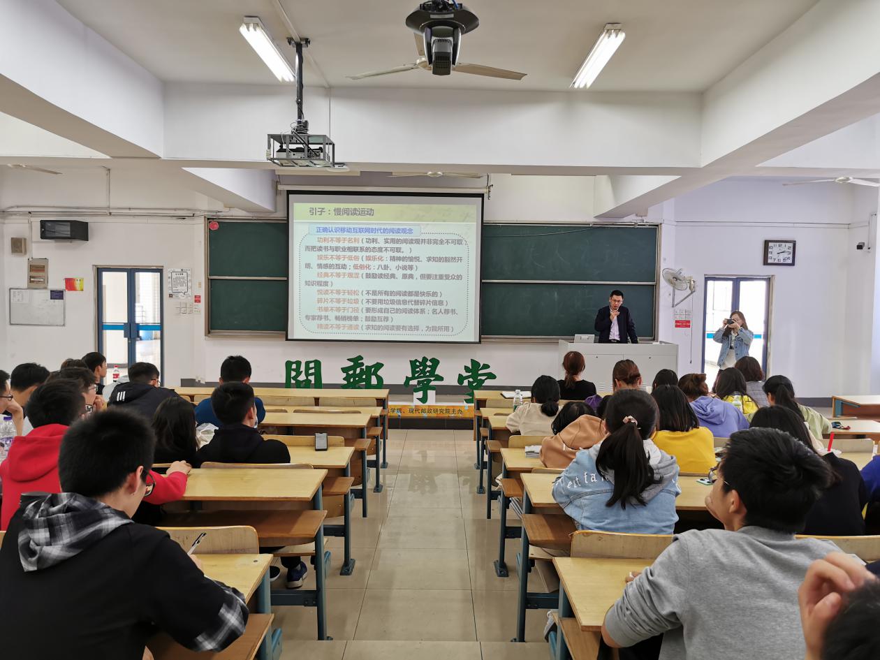 尹书记对讲座进行总结,并以“腹有诗书气自华”引导同学们应从当下开始,认真培养阅读习惯,通过阅读提升自身的涵养和气质;通过合理安排自己的碎片化时间和大段寒暑假时间来给自己学习充电。