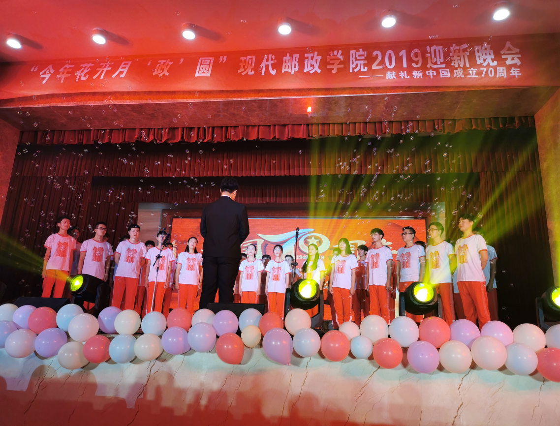 11月16日18:18,现代邮政学院在三牌楼校区华礼堂举办了“今年花开月‘政’圆·献礼新中国成立70周年”2019迎新晚会。莅临本次晚会的嘉宾有:江苏圆通速递公司总经理刘建国,副总经理章小平,现代邮政学院院长孙知信,党总支副书记王立辉,院长助理赵学健以及现代邮政学院全体师生和兄弟学院的老师同学们。
