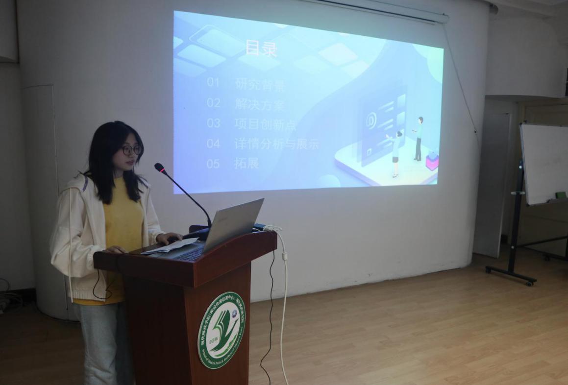 现代邮政学院科学技术协会主席袁畅同学宣布比赛开始。张雅雯同学代表她们的研究小组上台进行汇报。她们小组研究的课题是《医疗诊断学》教学平台。张雅雯同学首先介绍了本课题的基本概况,前期的各项准备工作,并就课题研究的目标和内容进行了详细的阐释。赵学健副院长对课题的前期研究及价值给予了充分肯定,并提出了课题研究的注意事项,对后期工作做了细致的指导。