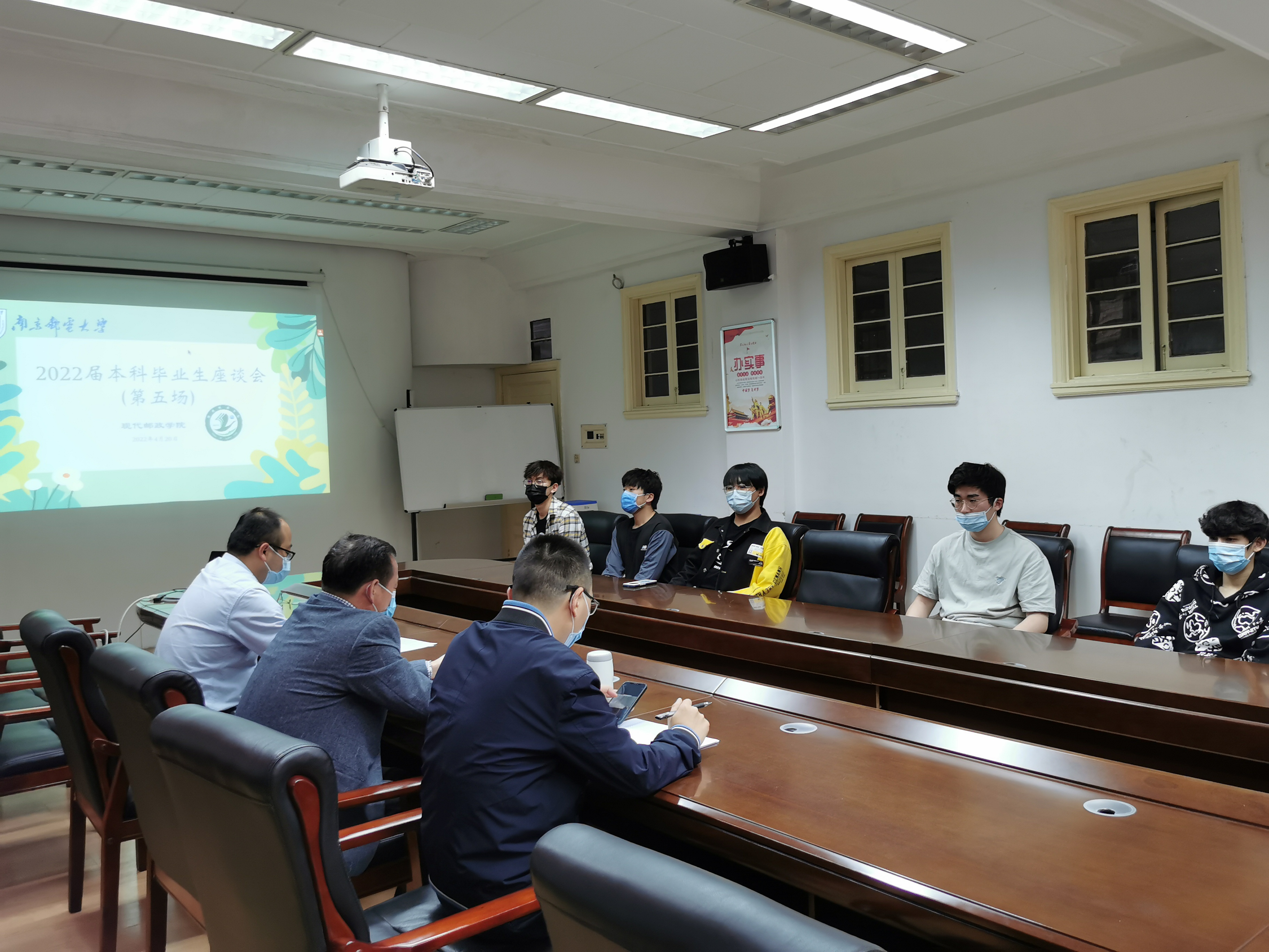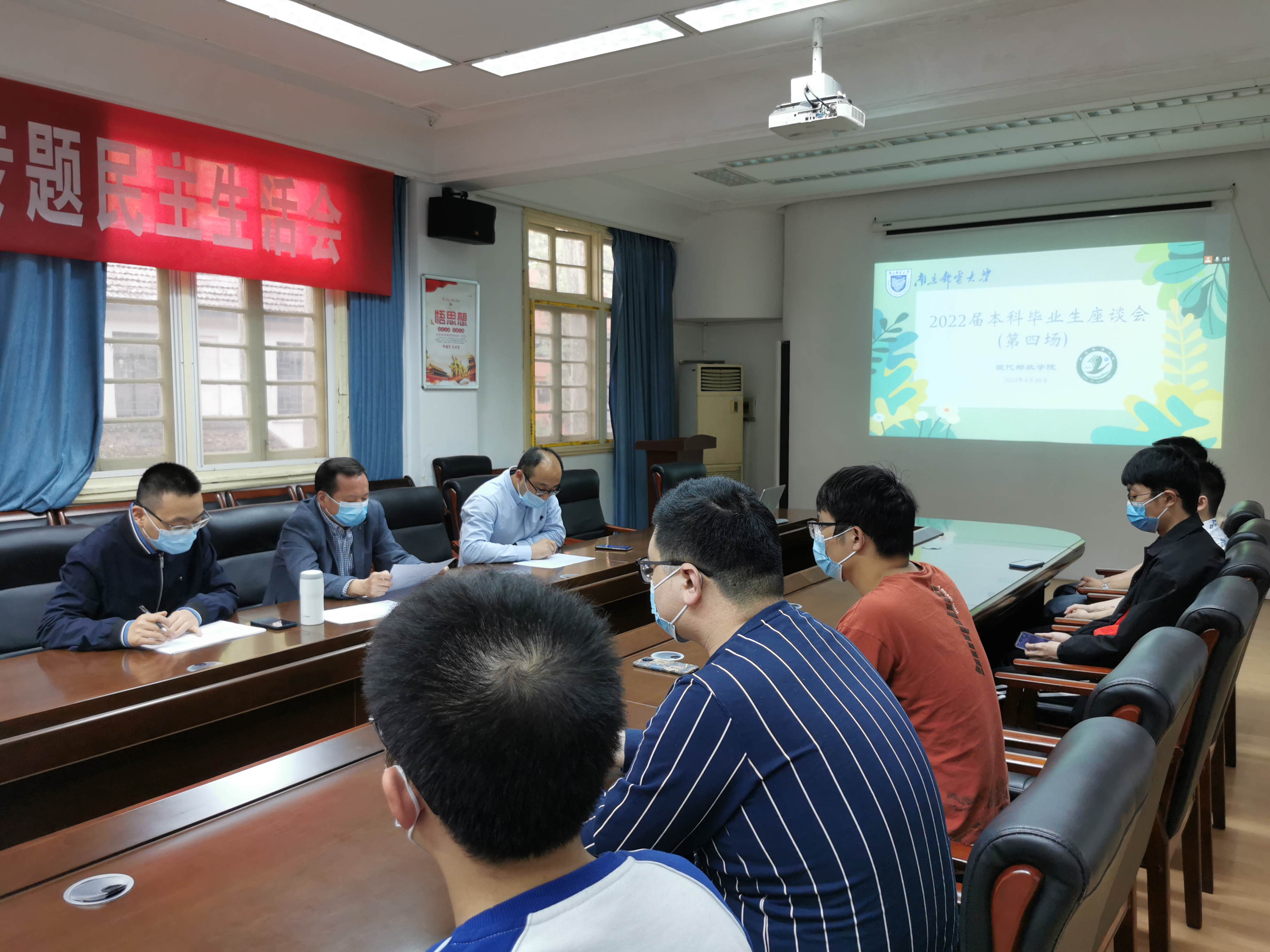 2022年4月20日上午,现代邮政学院在行政北楼二楼会议室召开第四场和第五场2022届本科毕业生座谈会,学院党总支副书记、院长孙知信、党总支副书记、副院长刘星、院长助理孙哲、毕业班辅导员盛秋旭和学生代表近20人分别参会。会议由学院党总支副书记、副院长刘星主持。