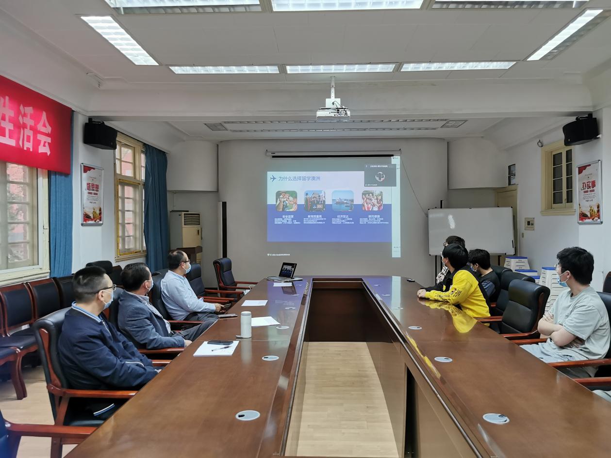 第五场为考研“二战”学生专场座谈会,8名有强烈考研“二战”意愿的学生参会。学院领导带领大家分析目前的考研形势、就业形势,并提醒学生合理评估自己的能力,做出更适合自己的选择。学院领导以马来西亚理科大学为例,提出出国留学的备选方案,针对出国升学的时间成本、便利性和高回报性进行剖析,希望大家可以拓宽思路。接着,新东方留学机构的老师通过线上会议的形式为同学们介绍了澳大利亚和英国留学的申请概况,希望为同学们开拓眼界,转变思路提供帮助。