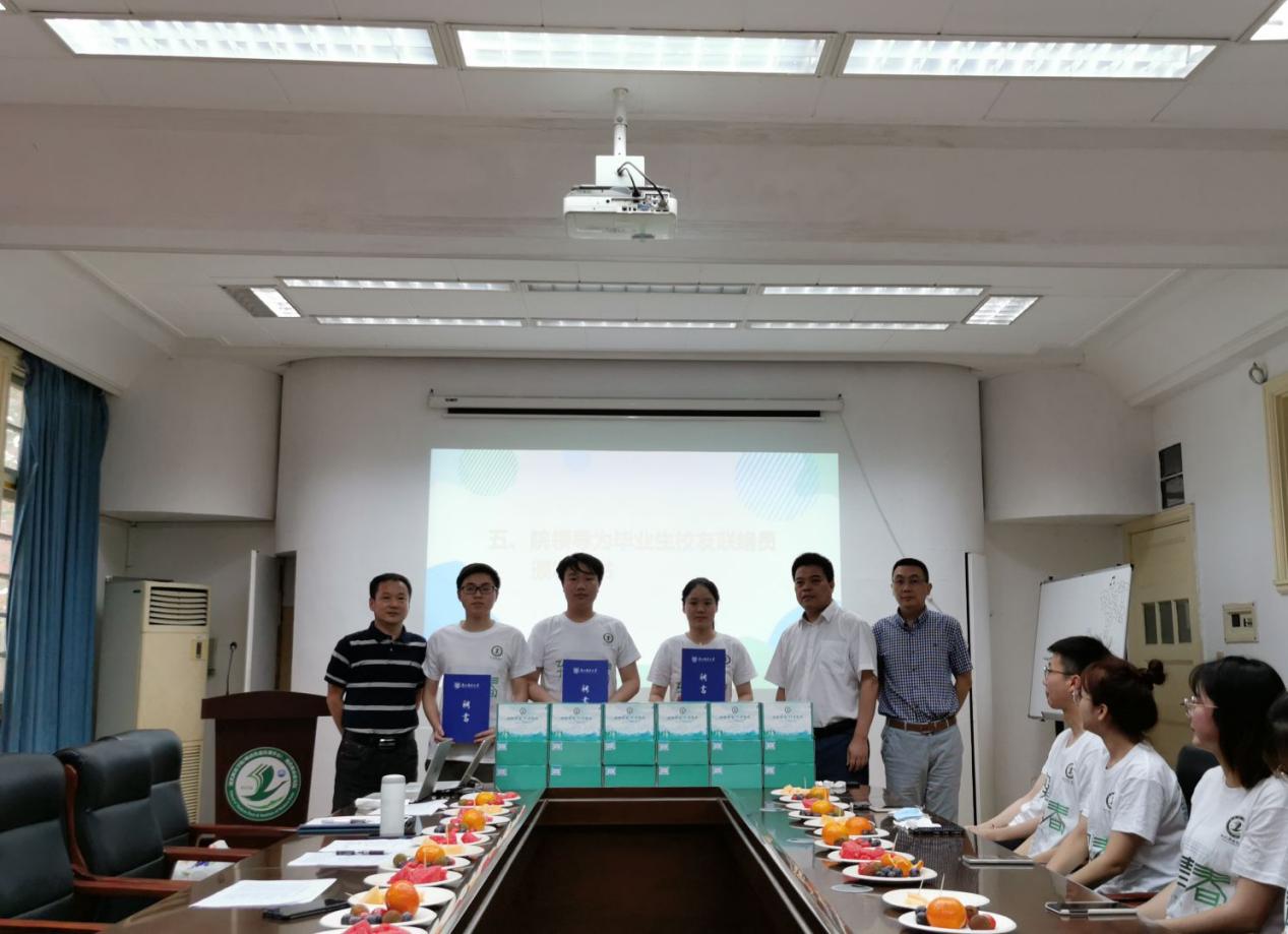 接着,学院领导向校友联络员颁发校友联络员聘书,在座的所有领导老师向学生代表赠送毕业礼物。茶话会圆满结束,与会人员合影留念。