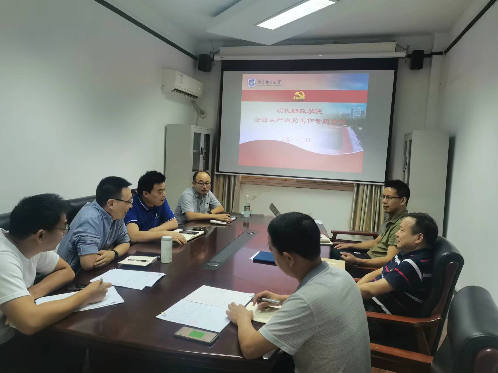 10月5日下午,现代邮政学院党委在三牌楼校区行政北楼学院311会议室召开全面从严治党工作会议。学院领导班子成员参加会议,会议由学院党委书记薛晓华主持。