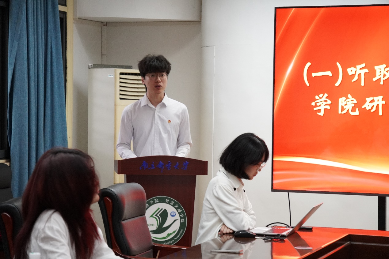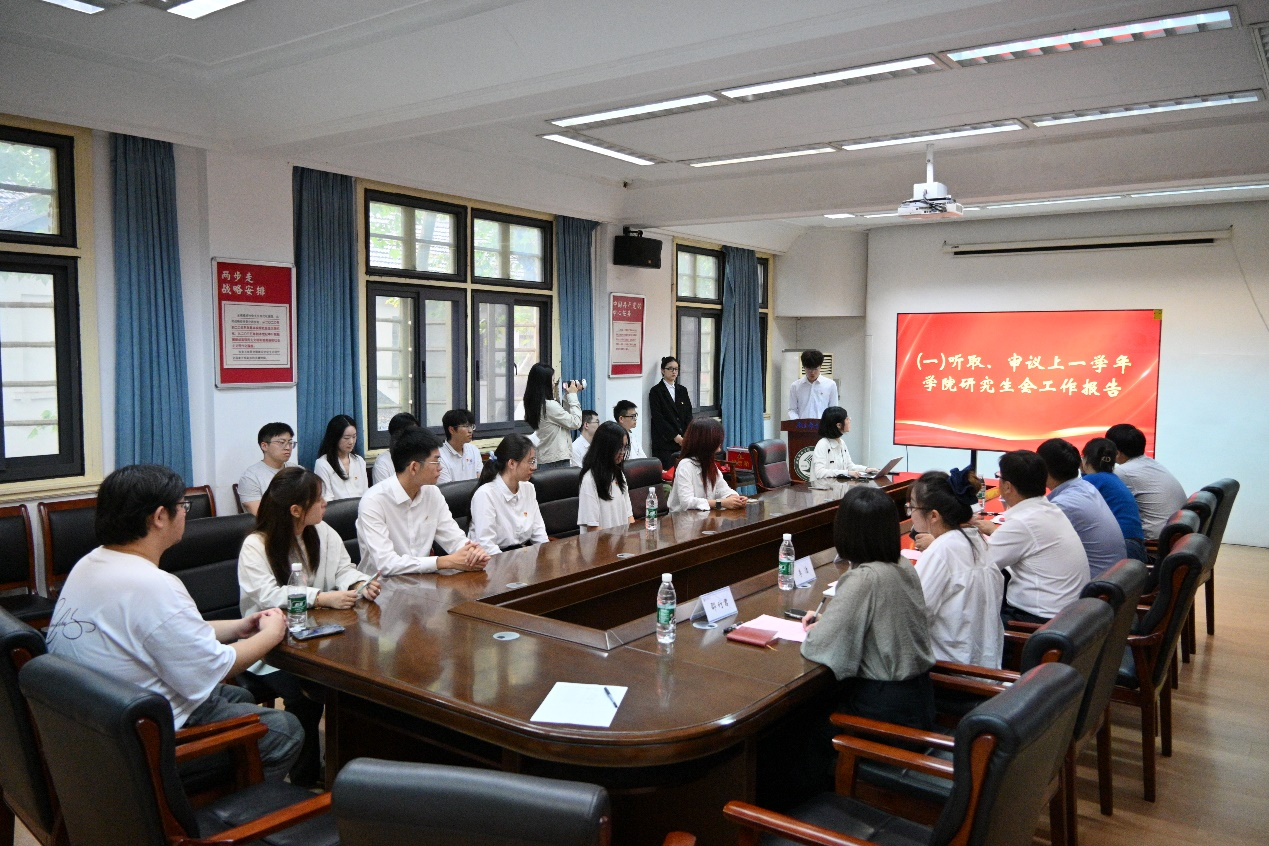 随后,2024级研究生冯浩宸代表上届研究生会作工作报告,系统回顾了学院研究生工作在思想建设、学术科研、社会实践等方面的成效,并对新一届研究生会的工作提出展望。经与会代表审议,工作报告获一致通过。