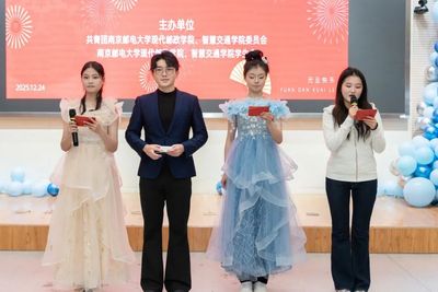 岁序更迭,华章新启。2025年12月24日晚,南京邮电大学仙林校区中兴报告厅灯火璀璨、暖意融融,现代邮政学院、智慧交通学院“邮智同辉,共启新程”2025年表彰大会暨师生元旦联欢会在此隆重举行。关工委老师、学院领导、教师代表、全体辅导员及获奖学生代表齐聚一堂,在表彰先进的荣光里,在欢声笑语的氛围中,共同迎接2026年的到来。