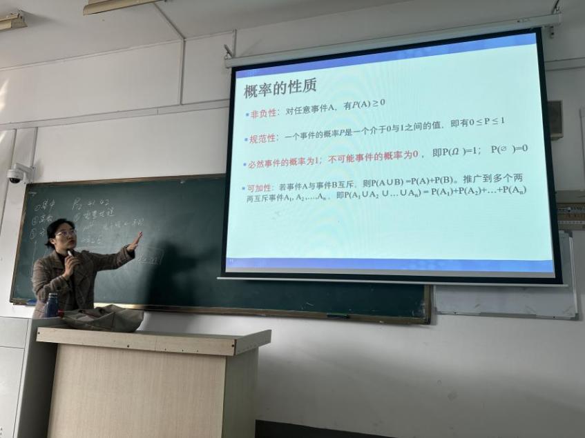 活动开始,新授课教师王玥老师率先登台授课,围绕《统计学》中“数据的概括性度量”核心内容,辅以概率统计基础知识,结合邮政工程专业实际应用场景,搭建起理论与实践的桥梁。她授课思路明晰、逻辑严谨,内容衔接自然流畅,借助邮政物流数据统计案例,将抽象的均值、中位数、方差、四分位数等统计概念具象化,用通俗易懂的语言阐释核心原理,让枯燥的统计知识变得生动可感。课堂上,王玥老师注重与学生互动交流,及时回应学生疑问,充分调动学生参与积极性,课堂气氛热烈活跃,彰显出青年教师扎实的专业功底、清晰的授课思路以及对待教学认真负责的态度。